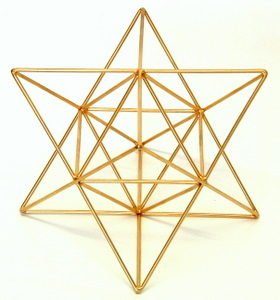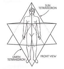 Persze, amint a képen láthatod, ez nem csak egy egyszerű "Dávid Csillag", mert a kétdimenziós ábrázolások is valamilyen 3 dimenziós objektum leképeződései a síkban. Az egyenlő oldalú háromszög például lehet a tetrahedron leképeződése. A tetra az négyet jelent, azaz ah 4 egyenlő oldalú háromszöget összeraksz, akkor tetrahedront kapsz. Ez egy plátóni test. A plátóni testekből 5 féle van, se több, se kevesebb, a lényegük, hogy egyforma, egybevágó, egyenlő oldalú síkidomokból vannak összerakva. Ezeknek nem kis jelentőségük van a teljes univerzum felépítésében, az atomoktól kezdve a galaxisokig, beleértve az élővilágot is.