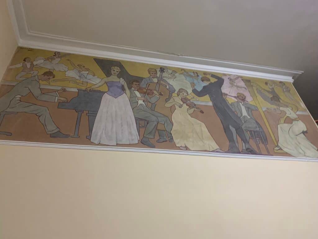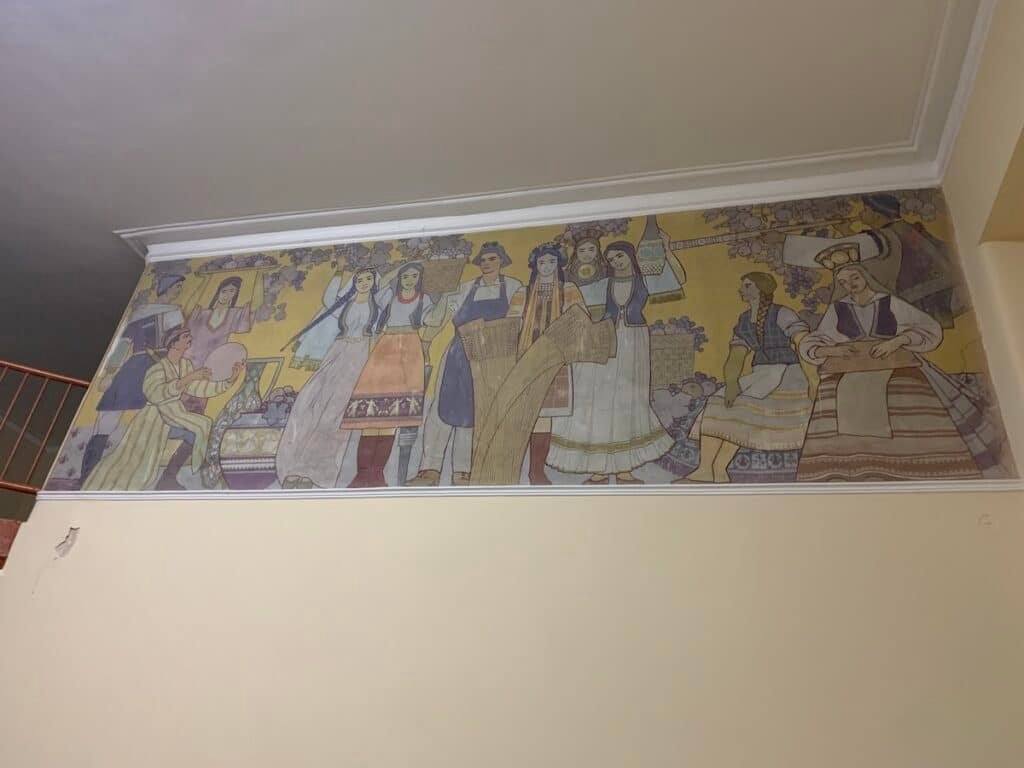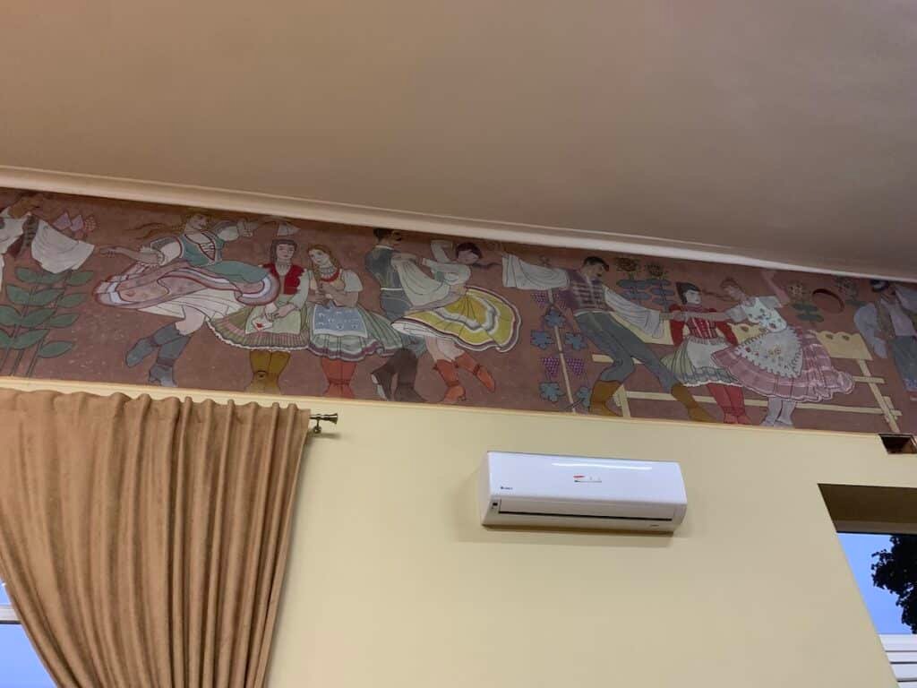 Nagyon megragadóak voltak a "szoc-reál" freskók, órákig lehetne nézegetni őket, és ezeket hűségesen restaurálták a művház felújításakor. A színházterem freskói magyar paraszti jeleneteket örökítettek meg. Persze itt is pazar ételekkel vártak minket, én sajnos már képtelen voltam enni, mert az ebéd annyira bőséges volt. Volt finom helyi bor is, de akármily meglepő, az utóbbi hónapokban nem ittam egy szem alkoholt sem, így most erről sem tudok Neked beszámolni... 🙁
