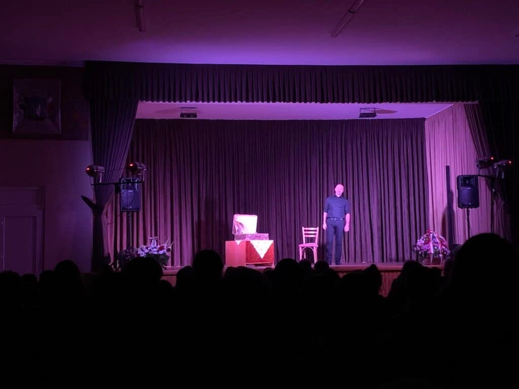 Délután hullafáradtak voltunk, el is nyomott minket az álom, de azért 6-ra (kis késéssel persze) visszamentünk Péterfalvára, ahol a 60-as években épült igazi szovjet kultúrházban színházi estet láttunk: Derzsi György adta elő egyszemélyes énekes-prózai darabját, a "Szerelmem Sárdy"-t. Isteni darab volt, a nagymamájának naplójából mesélte el egy titkos szerelem történetét, persze Sárdy dalokkal kísérve.