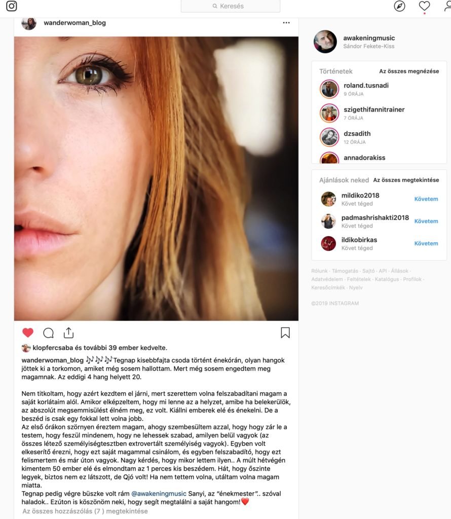 Tegnap pedig végre büszke volt rám @awakeningmusic Sanyi, az “énekmester”.. szóval haladok.. Ezúton is köszönöm neki, hogy segít megtalálni a saját hangom!❤️